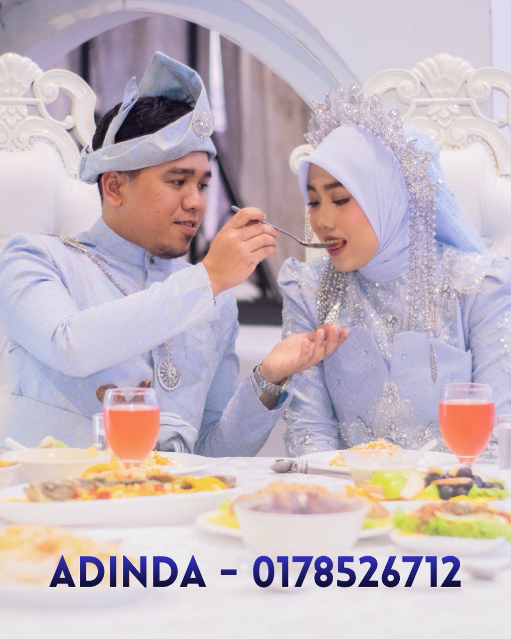 Majlis sanding penuh meriah dengan dewan, dekorasi megah, busana lengkap, katering, PA system & emcee.